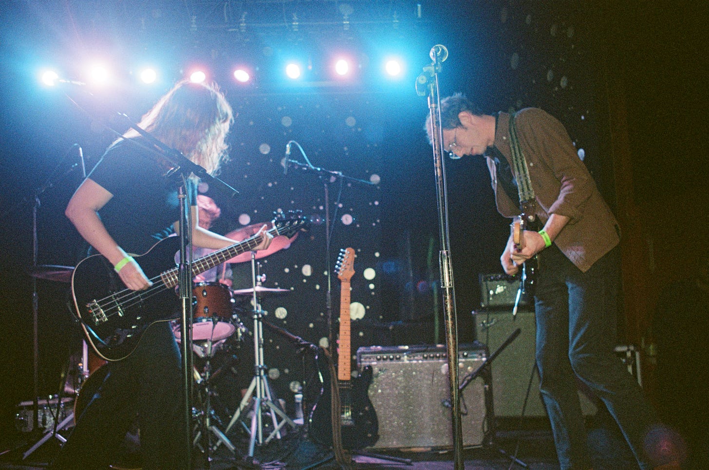 Whenever I catch Verity Den, I especially get caught up in the swirling sounds they make, enjoying the psychedelic storm of soft snowfall and glittery solar flares than I am thinking of pushing play on a camera app. This is exactly what happened on August 23, 2025 when the Carrboro, NC based combo played the benefit show for the Spider Bags Dan McGee. There were long moments during their set when I was in a trance and would just snap out of it for a minute or so to snap the shutter on the Praktica LTL (one of my old faithful pieces of gear I have talked about many times before at this point on Clangoring) that was hanging from my shoulder. Here are some of those.
